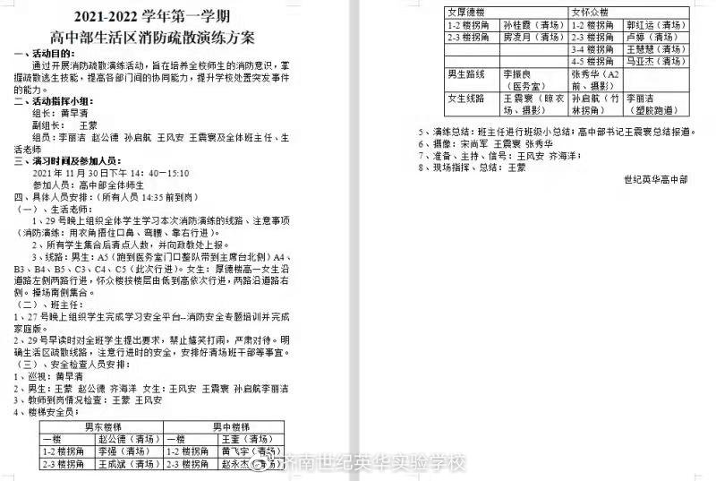 会议伊始,高中部政教处王风安主任就消防演练做出安排。他指出,安全稳定是干好一切工作的前提和基础;确保师生安全,是学部工作的头等大事。班主任老师务必从思想上高度重视此次演练,叮嘱好学生,熟悉逃生路线,按次序,听指挥。
