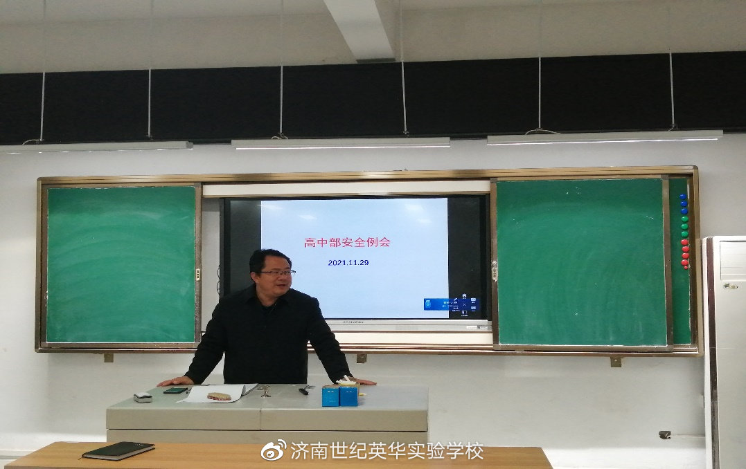 为贯彻落实学校安全会议精神,总结前段时间工作得失,部署下一阶段校园安全工作, 11月29日下午,高中部召开安全工作会议。会议由高中部王蒙副部长主持,高中部全体教师参加了此次会议。